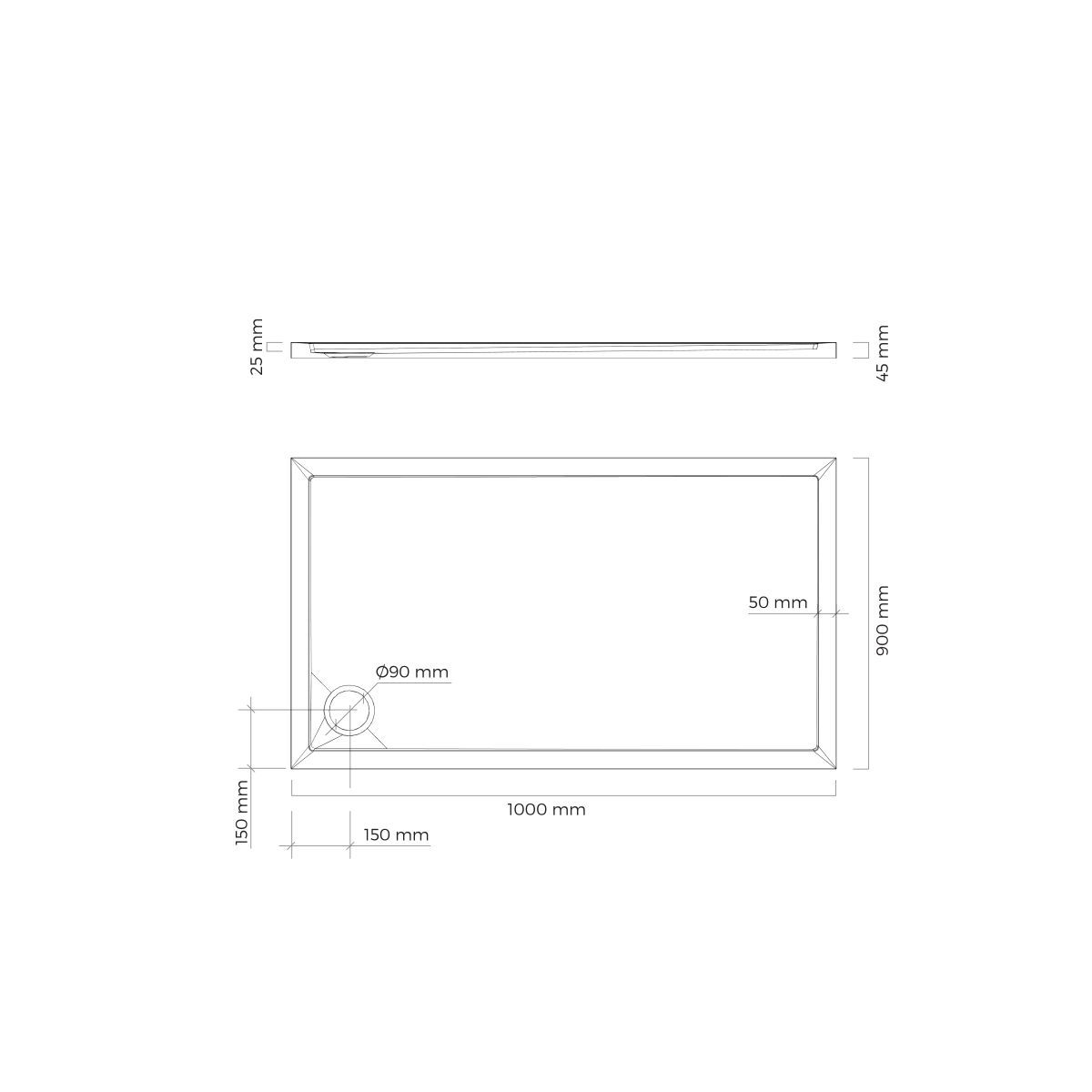 Oltens Superior Rechteckige Duschwanne 100x90 cm schwarz 15005300