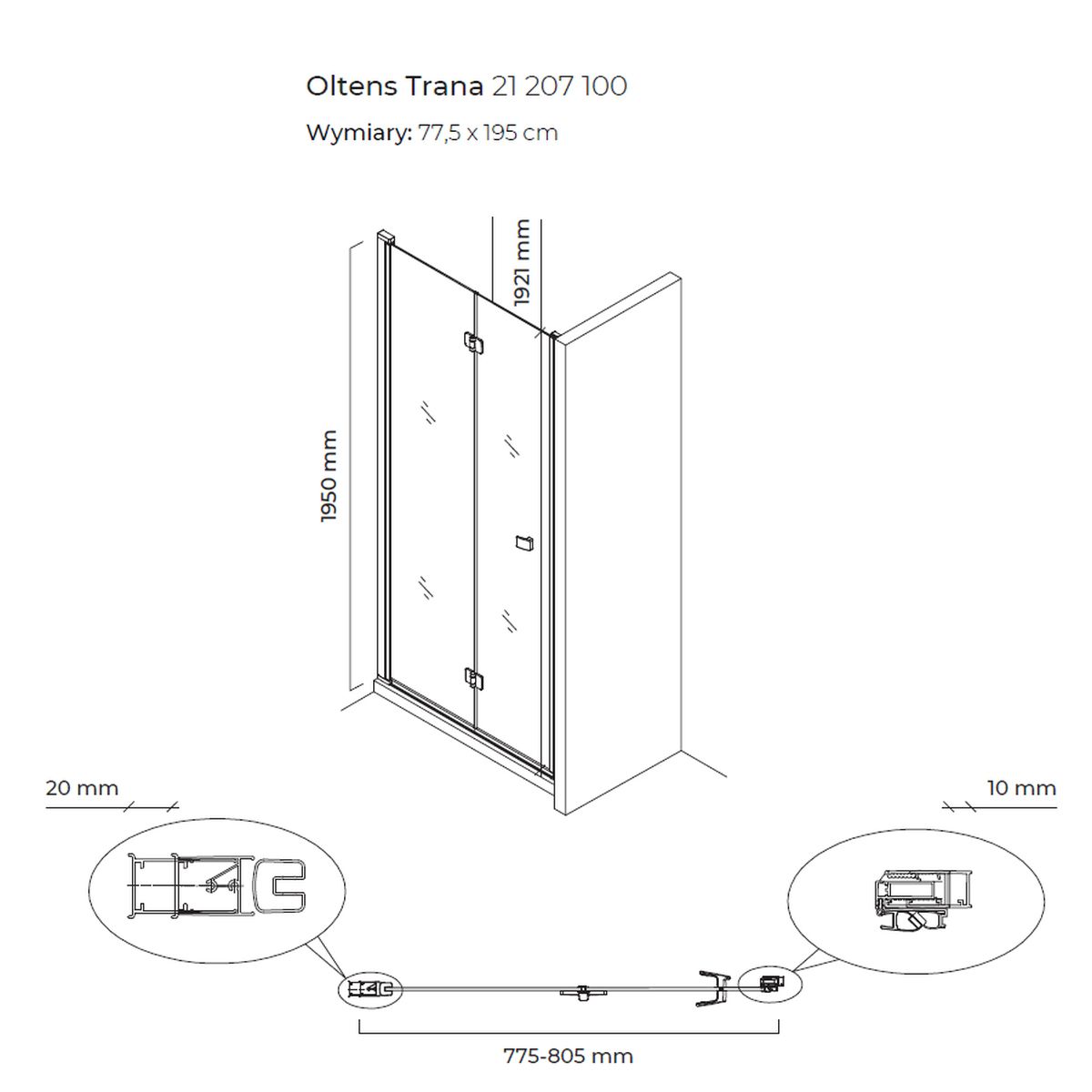 Oltens Trana Duschtüren 80 cm faltbar chrom Glanz/durchsichtiges Glas 21207100