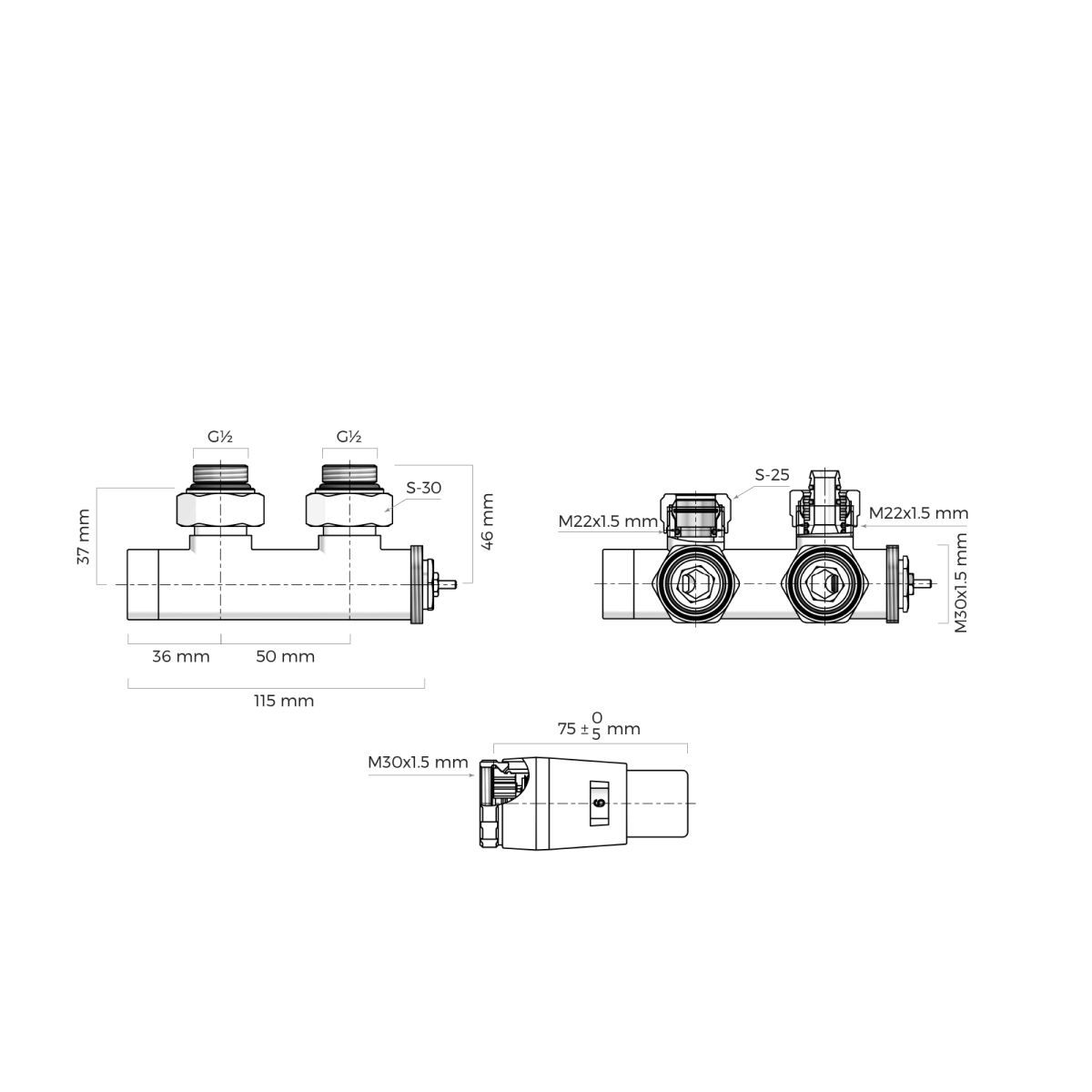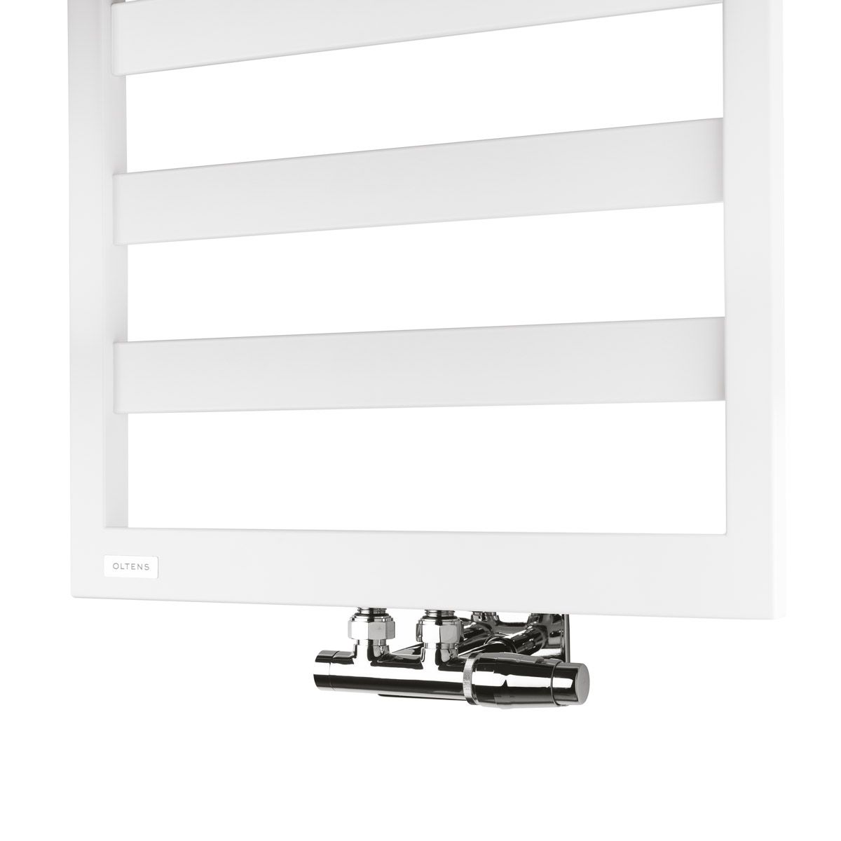 Kompletter Ventilsatz für die Montage eines Heizkörpers mit Mittelanschluss im Abstand von 50 mm. Der Satz besteht aus einem Anschlussblock mit eingebautem Thermostatventil, einem Absperrventil und einen Thermostatkopf. Geeignet sowohl für die Montage in Zentralheizungsanlagen aus Kupferrohren 15x1 als auch aus Kunststoffrohren PEX/AluPEX 16x2. Alle Elemente des Sets sind farblich auf die Heizkörper der Marke Oltens abgestimmt.