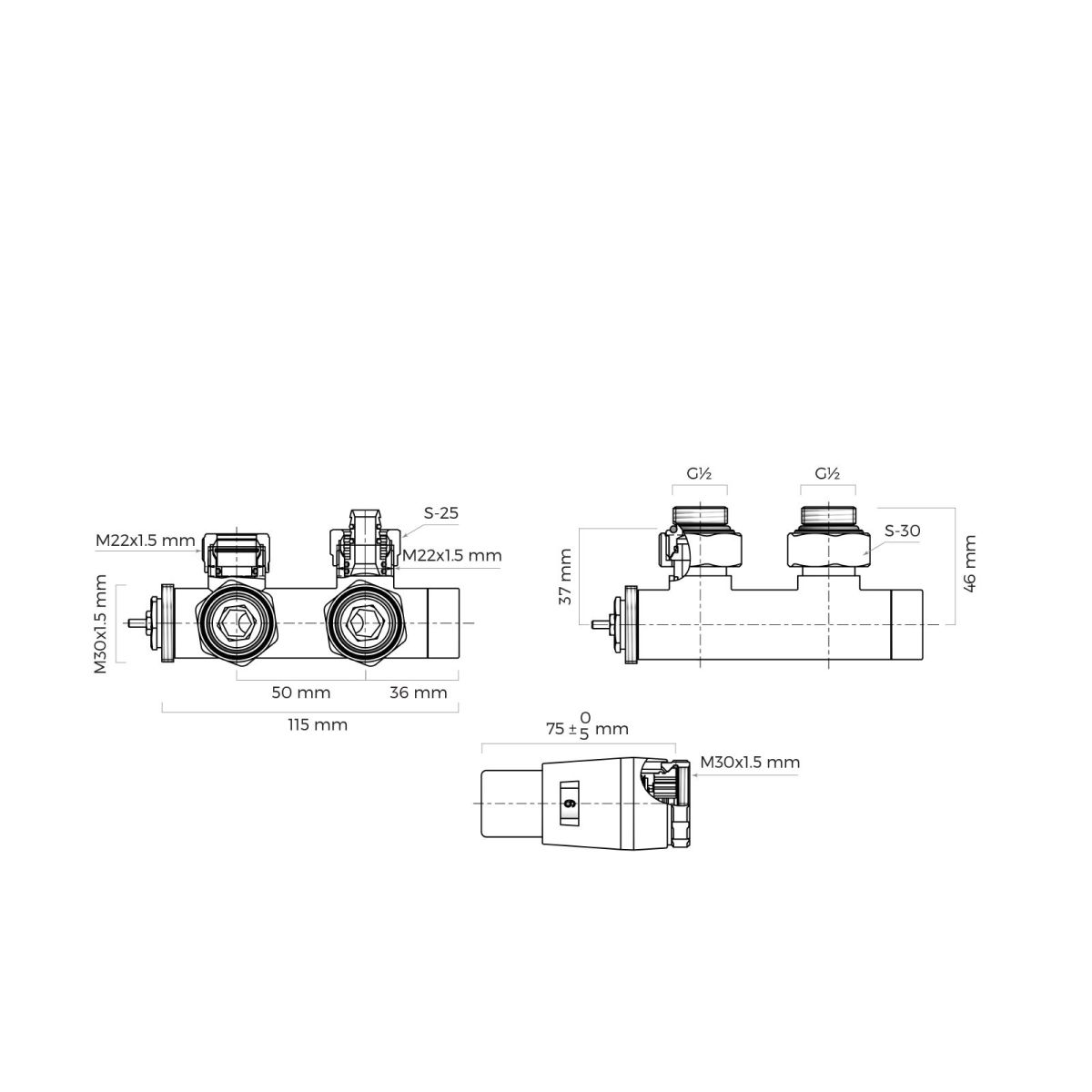 Kompletter Ventilsatz für die Montage eines Heizkörpers mit Mittelanschluss und einem Abstand von 50 mm. Der Satz besteht aus einem Anschlussblock mit eingebautem Thermostatventil, einem Absperrventil und einen Thermostatkopf. Geeignet sowohl für die Montage in Zentralheizungsanlagen aus Kupferrohren 15x1 als auch aus Kunststoffrohren PEX/AluPEX 16x2. Alle Elemente des Sets sind farblich auf die Heizkörper der Marke Oltens abgestimmt.