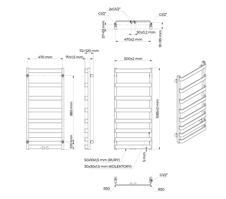 Das Leiterdesign des Heizgeräts ermöglicht es Ihnen, Ihre Badetücher und Garderobe bequem zu trocknen. Die Anzahl der Lamellen hängt von der Höhe des Heizkörpers ab, so dass jeder das ideale Modell für sich selbst wählen kann. Das einzigartige Design des Produkts unterstreicht den Charakter der Einrichtung, in der es verwendet werden soll.