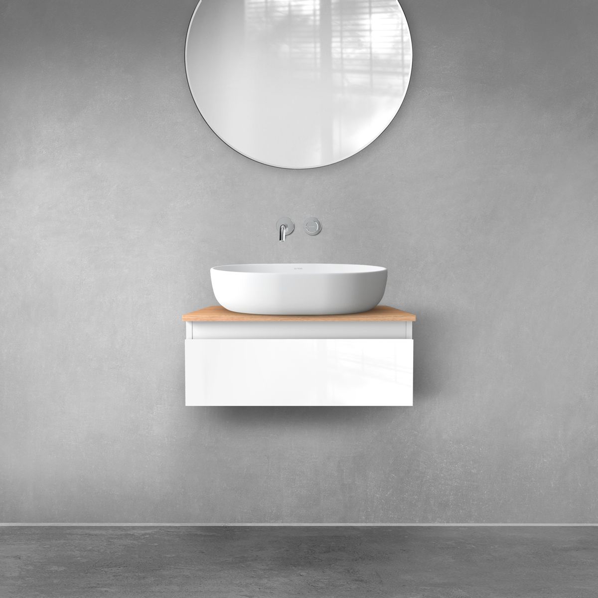 Der Preis gilt nur für den Schrank. Zur Ergänzung mit dem Waschbecken Oltens Vernal 60 cm oder einer Arbeitsplatte.