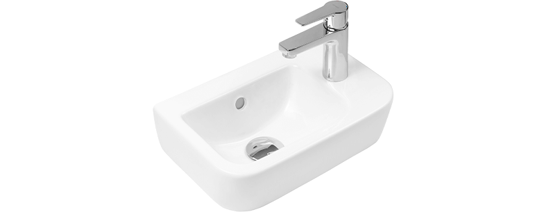 Das Waschbecken ist für die Wand‑Montage an den mitgelieferten Schrauben geeignet. Es ist perfekt auf einen dekorativen Metallsiphon abgestimmt. Dank seiner geringen Größe, insbesondere seiner Tiefe (nur 24,5 cm), ist dieses Produkt ideal für kleine Bäder.