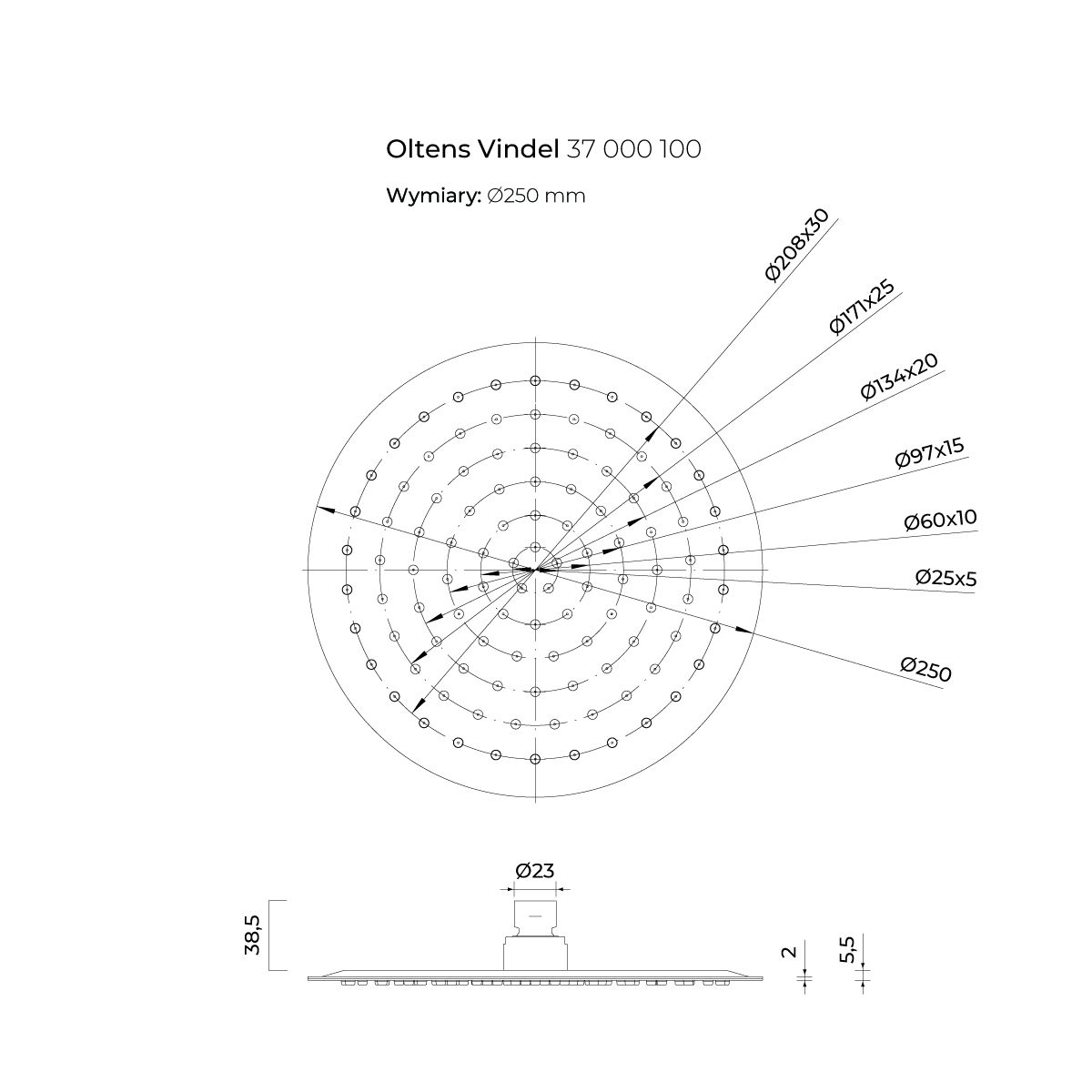 Die runde Oltens Vindel-Regendusche mit einem Durchmesser von 250 mm erfüllt die Erwartungen jedes Badezimmerbenutzers. Sie unterstreicht perfekt den Badbereich sowohl moderner als auch traditioneller Innenräume. Ein zusätzlicher Komfort ist das System zur einfachen Entfernung von Kalkablagerungen, das die Reinigung der Regendusche zum Kinderspiel macht. Durch die Einstellung des Neigungswinkels der Regendusche kann diese ganz nach Ihren Vorlieben angepasst werden.