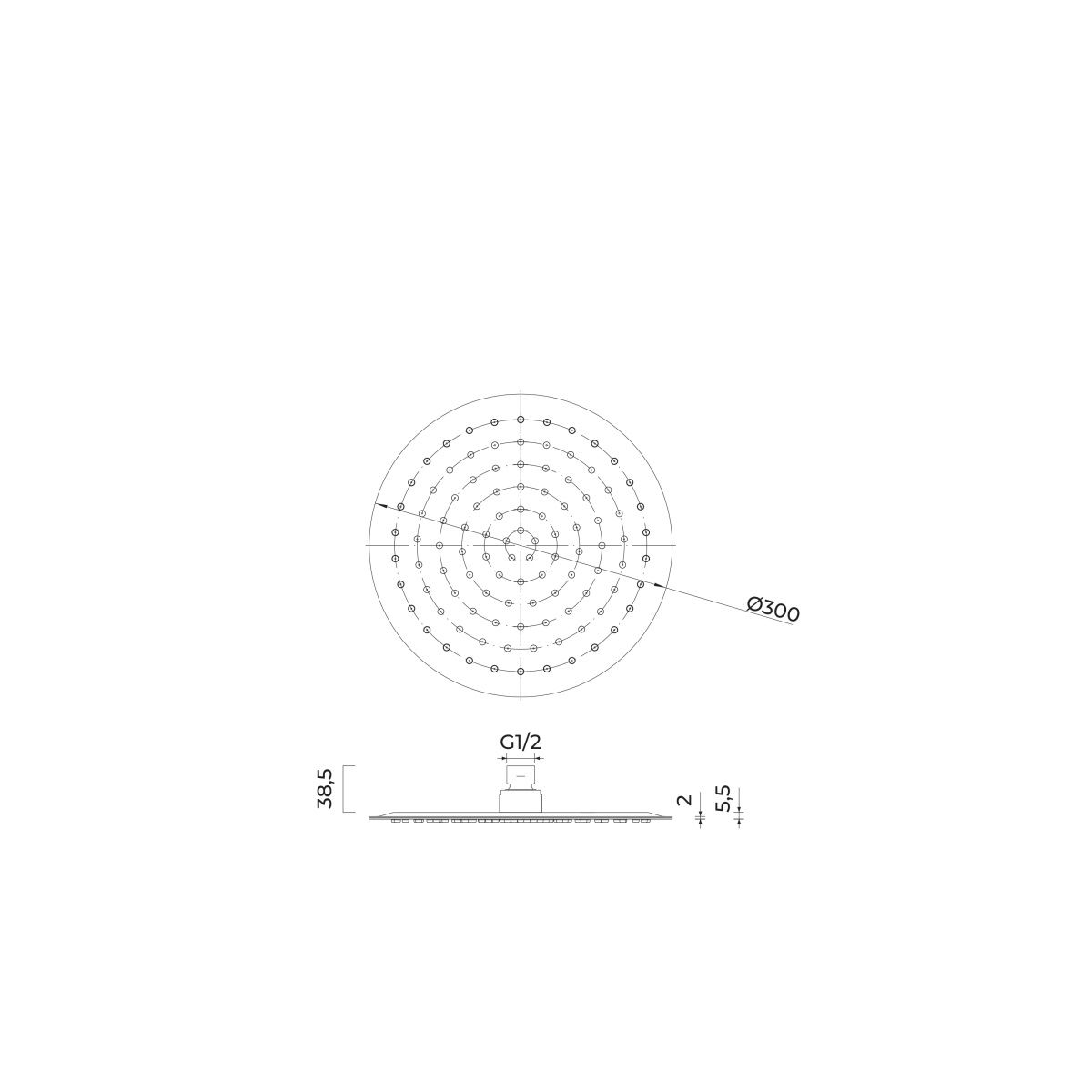 - rund mit einem Durchmesser von 300 mm