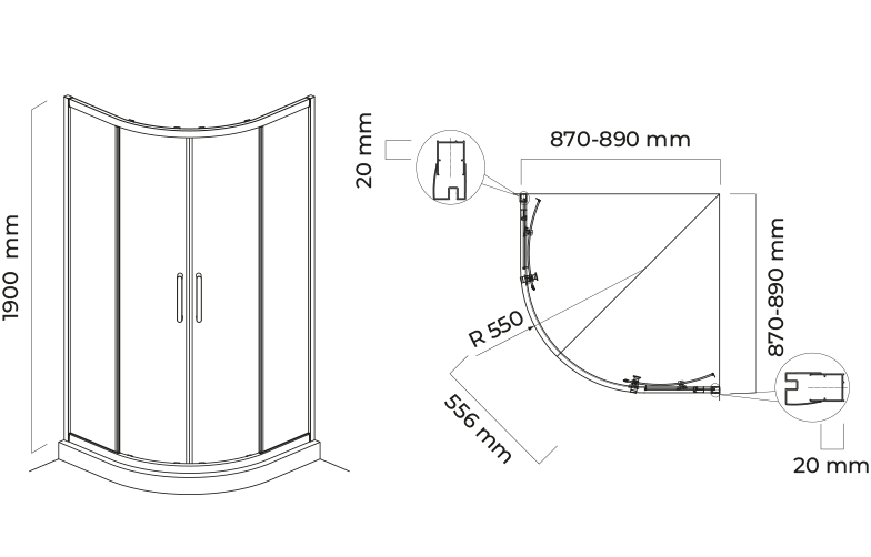 Verstellbare Chromprofile (Toleranz von 20 mm auf jeder Seite).