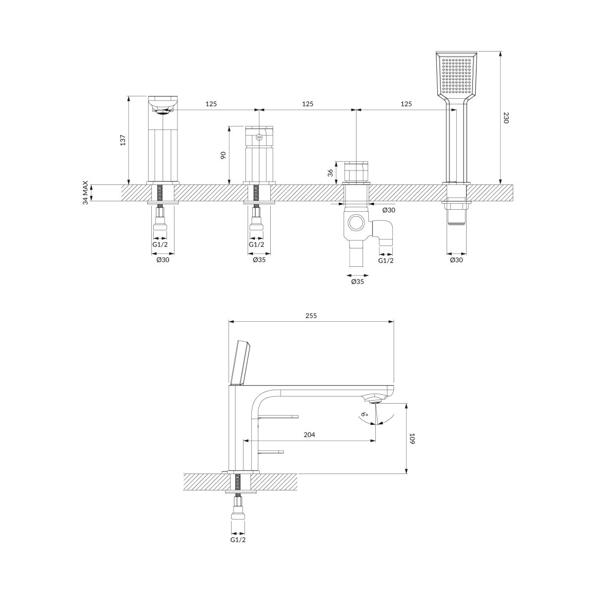 APURE | 4-Loch-Wannenarmatur