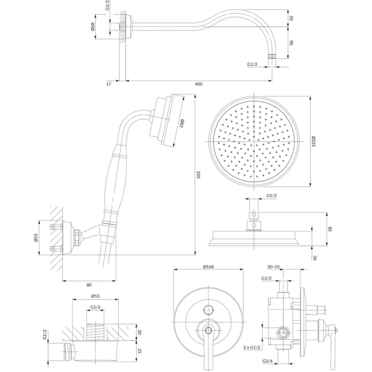 - Messing-Regenduschkopf, Größe: ø22,5 cm