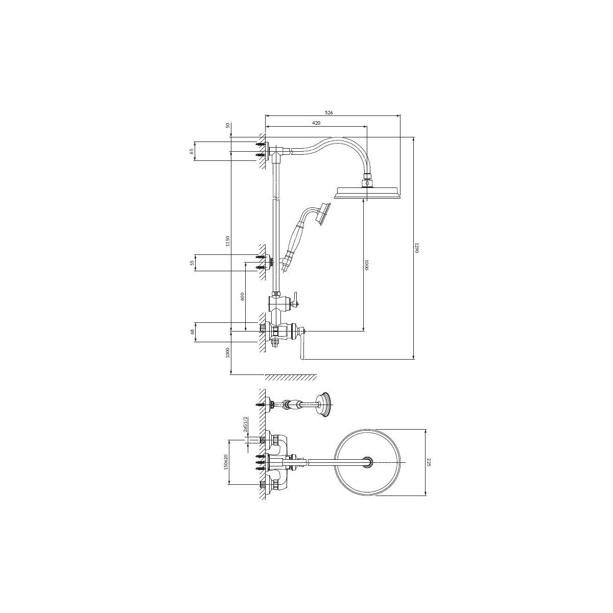 - Messing-Regenduschkopf, Größe: ø22,5 cm, Abstand zur Wand: 42 cm