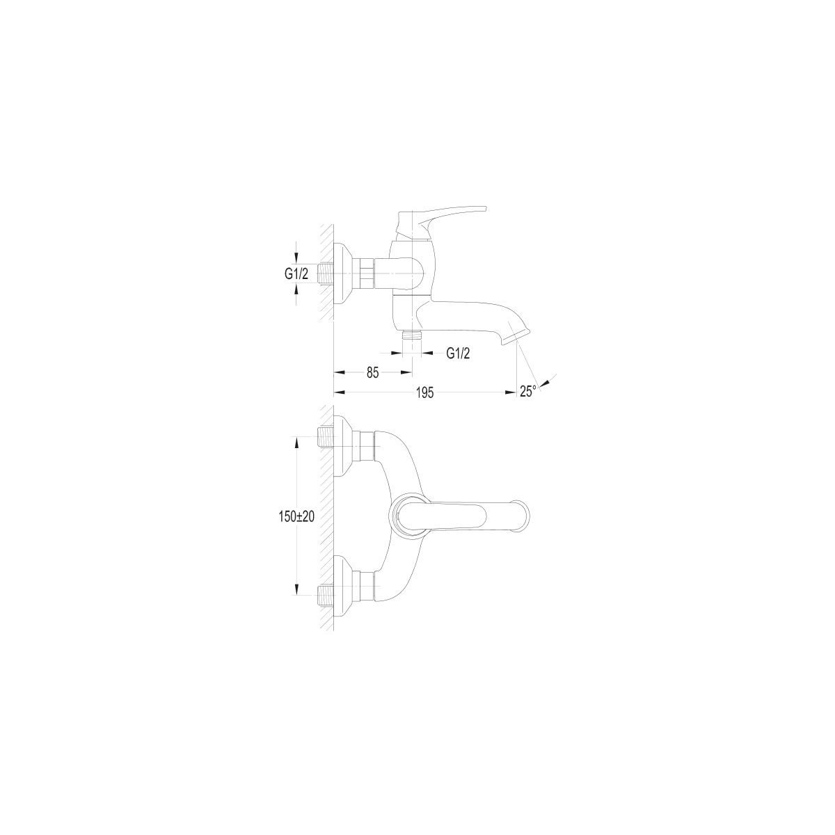 - Abstand des Auslaufs von der Fliesenoberfläche: 19,5 cm