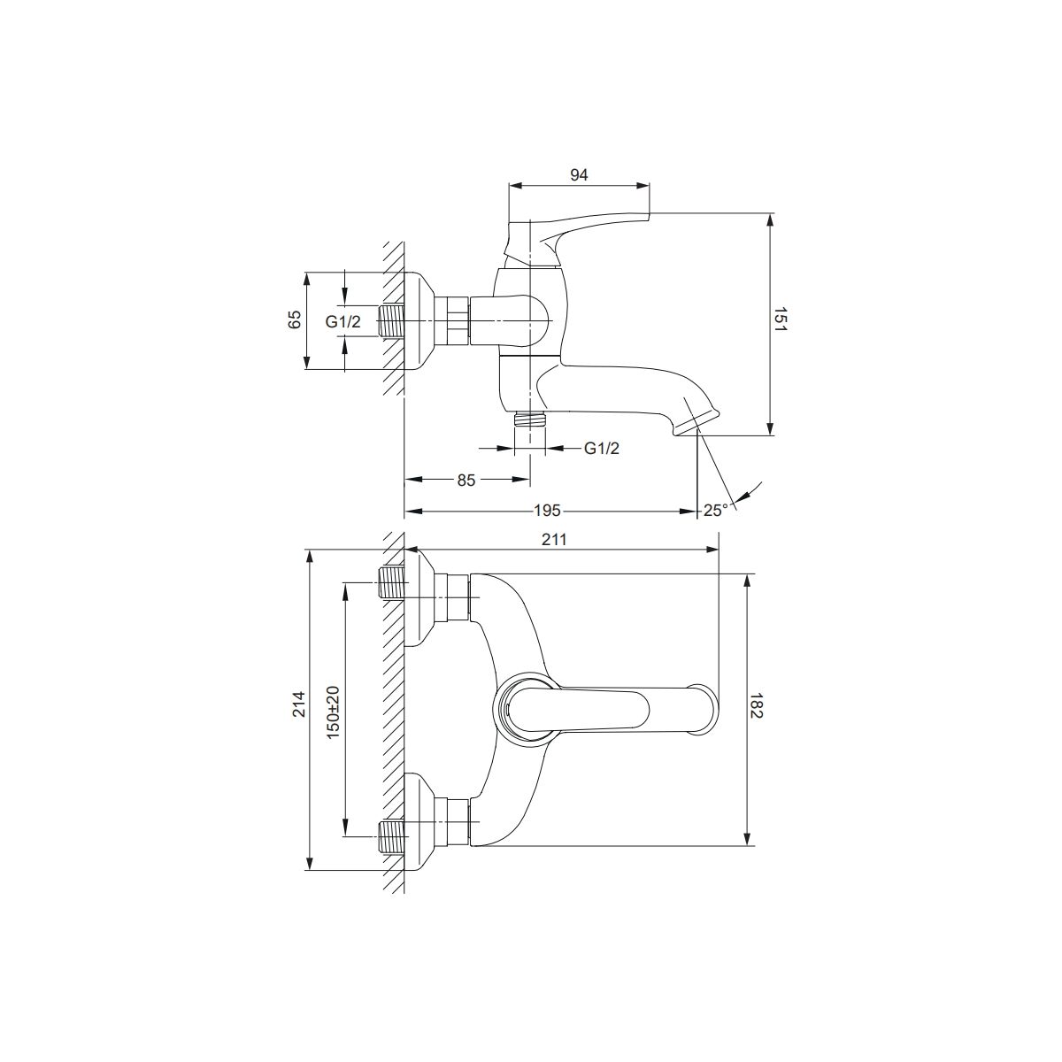 - Abstand des Auslaufs von der Fliesenoberfläche: 19,5 cm