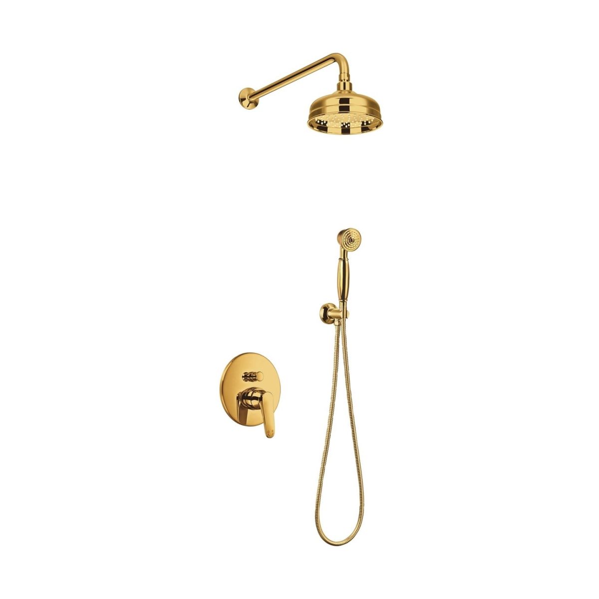 Omnires Art Deco Badewannen- und Duschset Unterputz mit Regenbrause gold SYSAD27GL