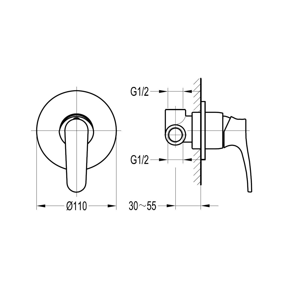 - Mindesttiefe in der Wand für den Einbau des Mischers: 5,5 cm