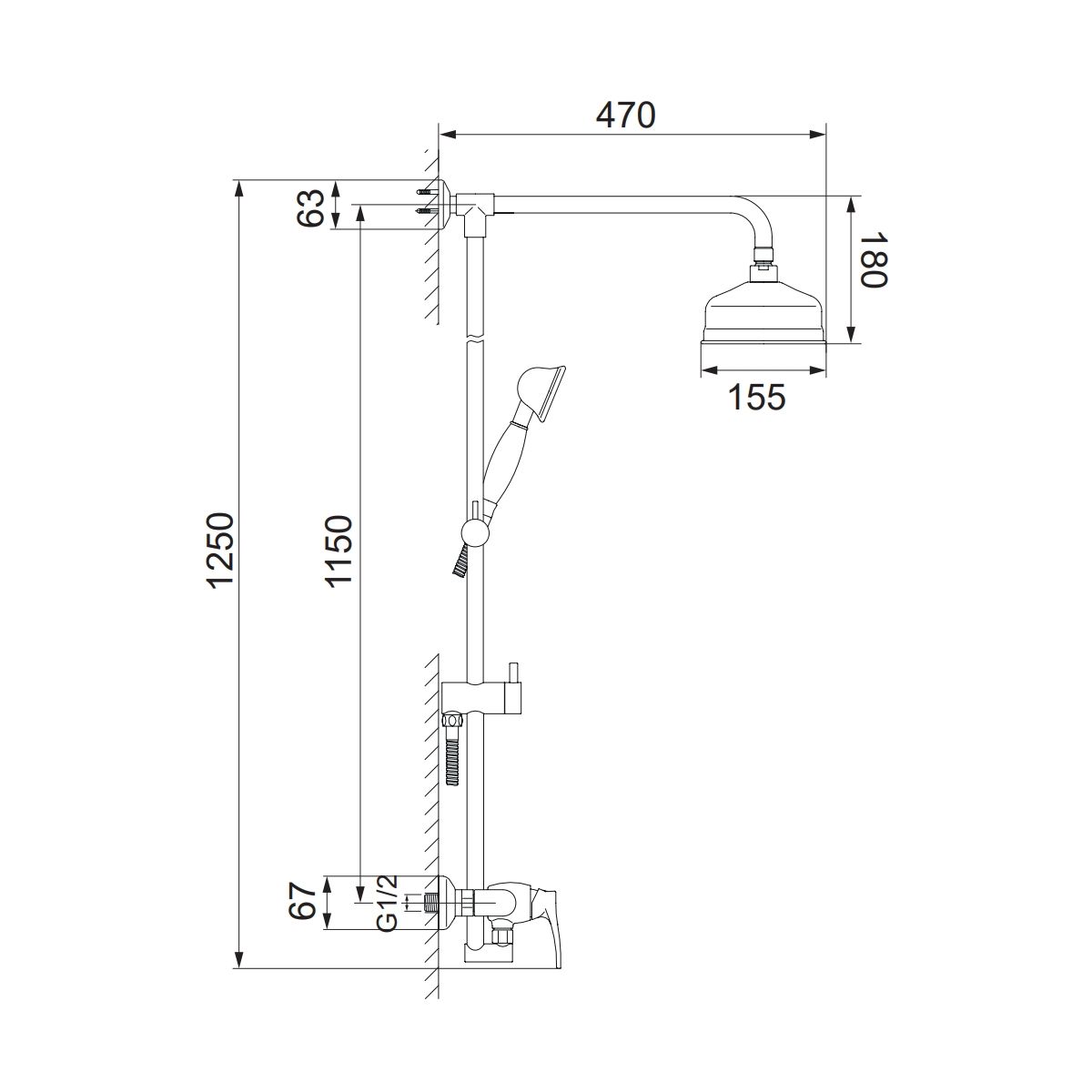 - Komplette Regendusche (Durchmesser Ø 15,5 cm, Reichweite von der Wand 40 cm)