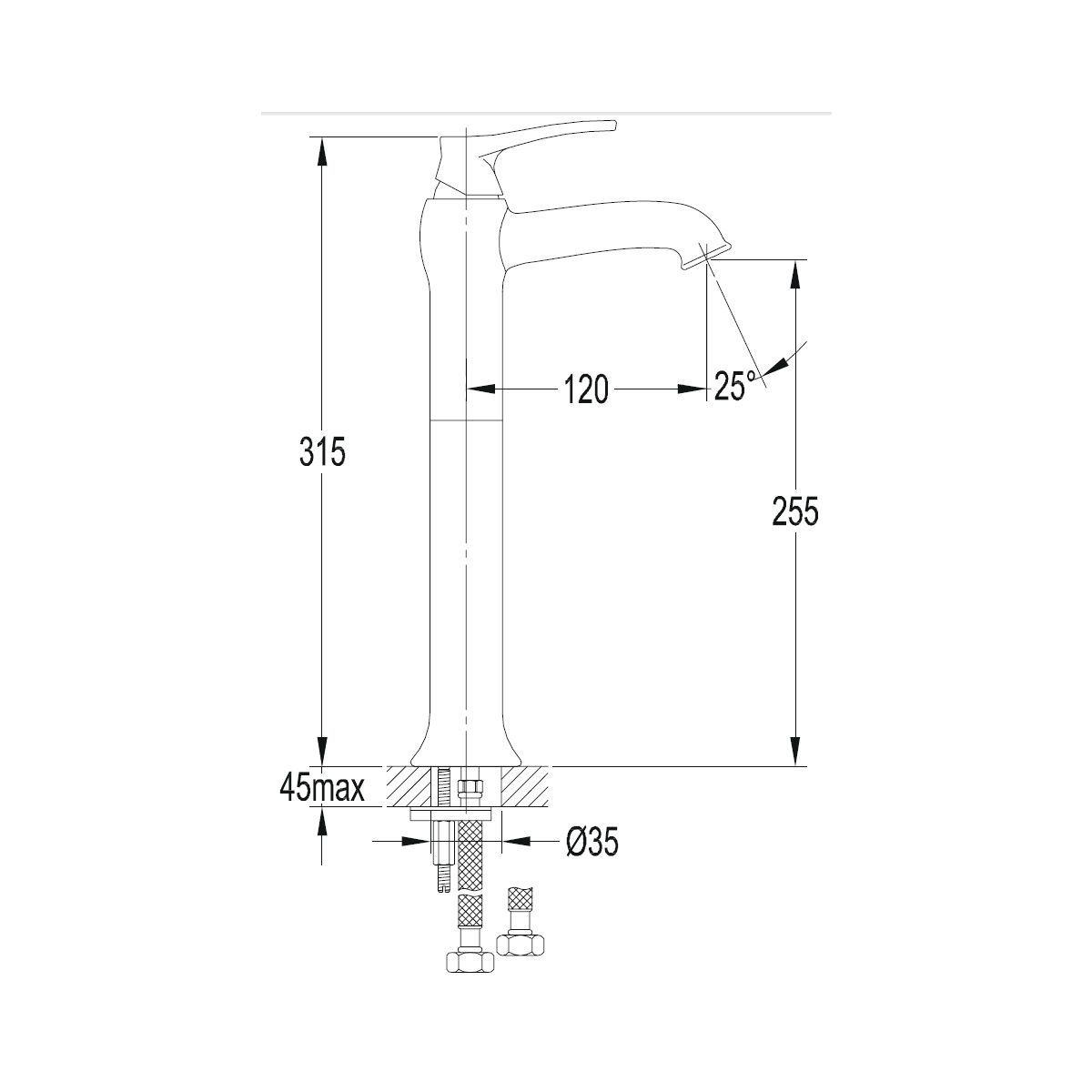 - Höhe des Wasserauslaufs: 25,5 cm