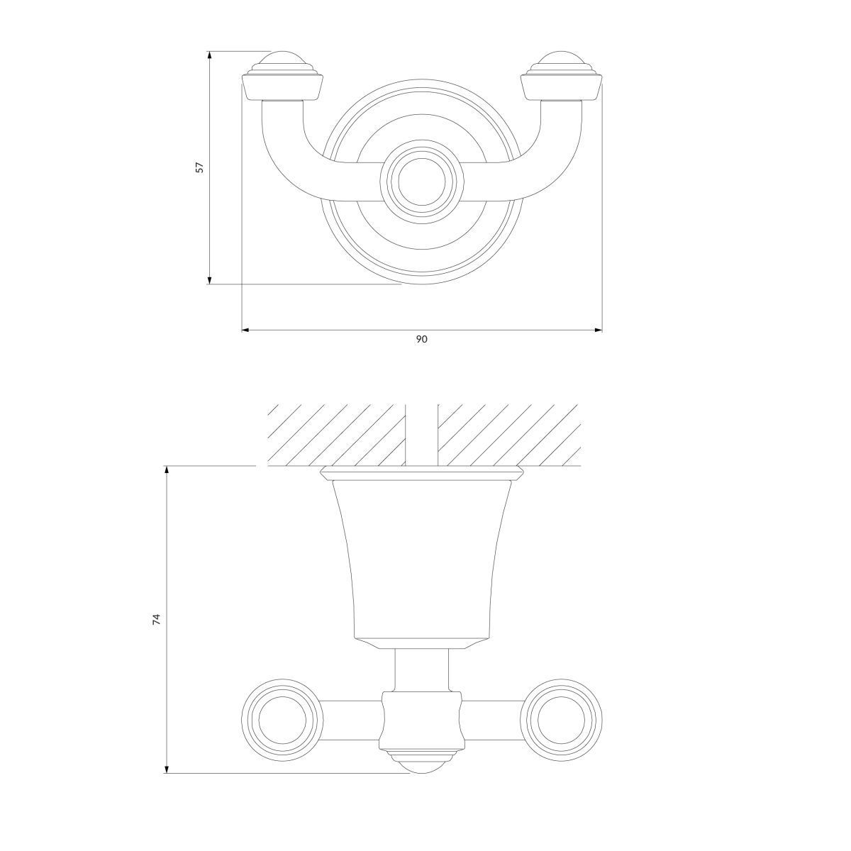- Breite: 9 cm, Höhe: 6 cm, Abstand zur Wand: 7 cm