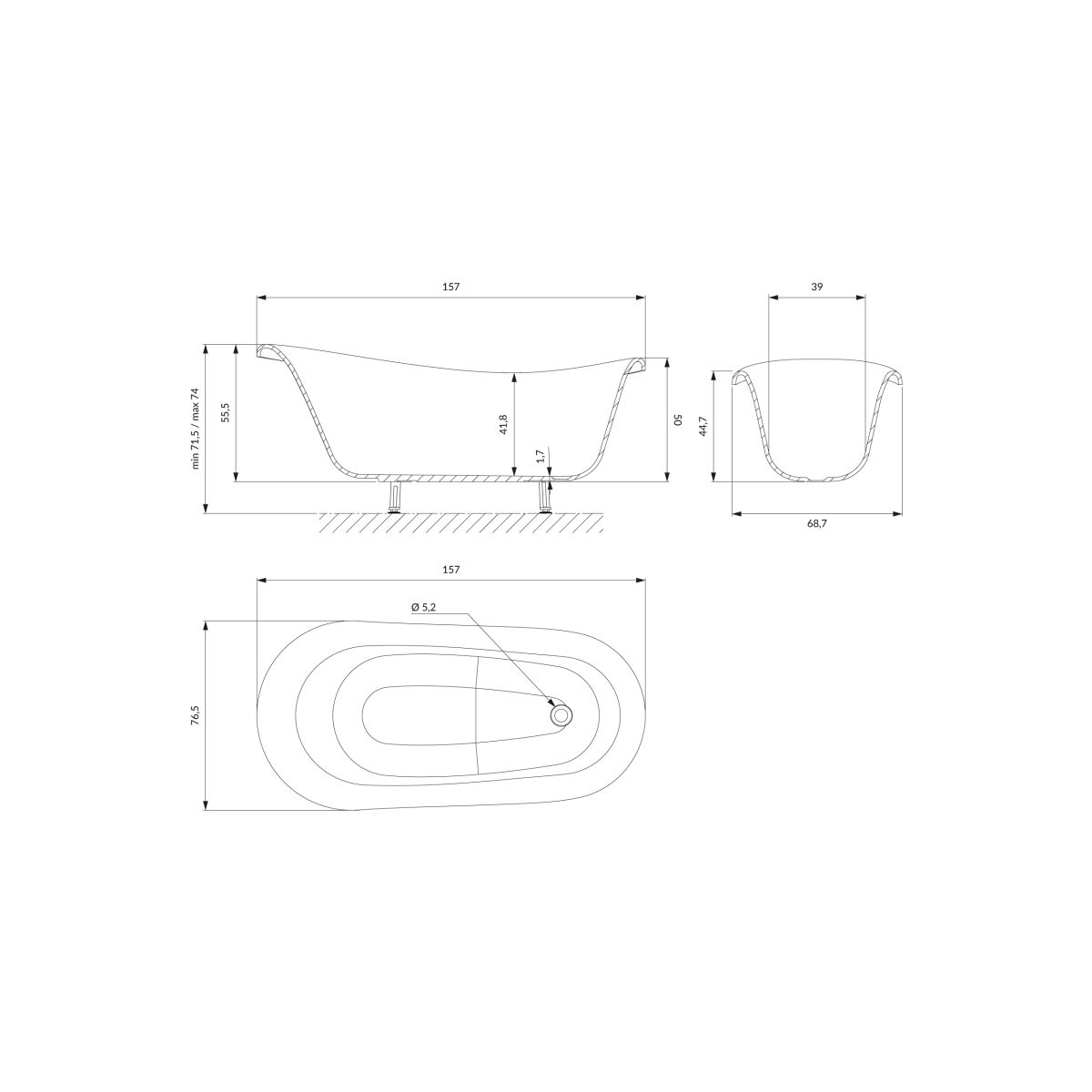 ATENA COMFORT M+ | freistehende Badewanne, 157 x 77 cm