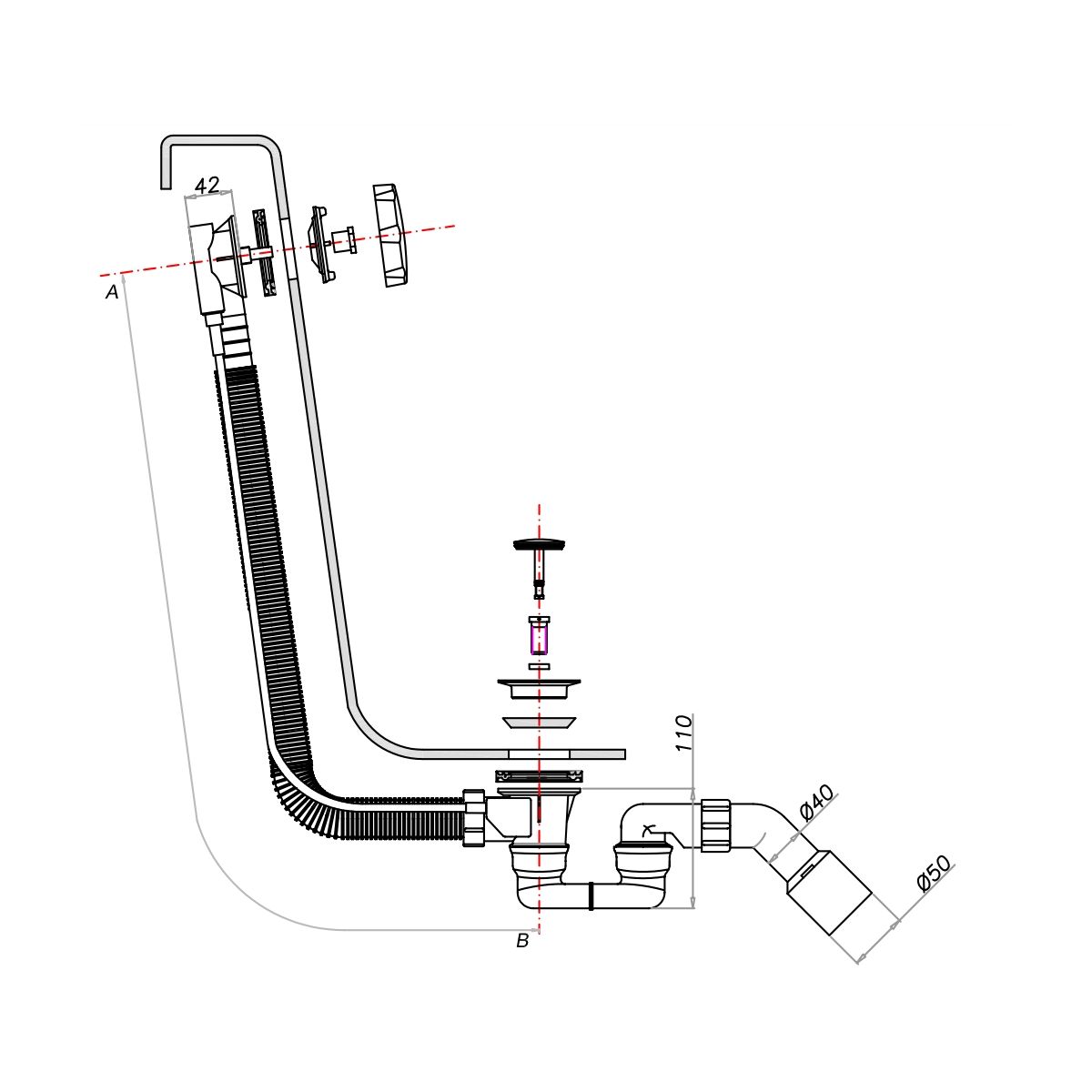 - Länge: bis zu 81 cm (kann für Badewannen mit einem größeren Abstand als dem Standardabstand zwischen Überlauf- und Abflussöffnung verwendet werden)