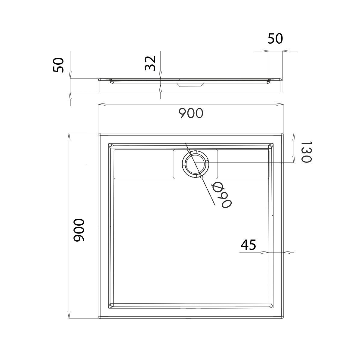 Omnires Brooklyn Quadratische Duschwanne 90x90 cm weiß BROOKLYN90/KBP