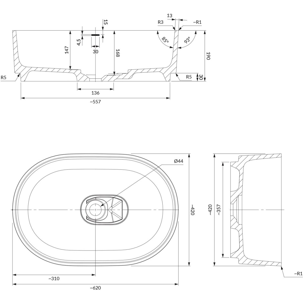 CADENCE Aufsatzwaschbecken M+, 62 x 42 cm