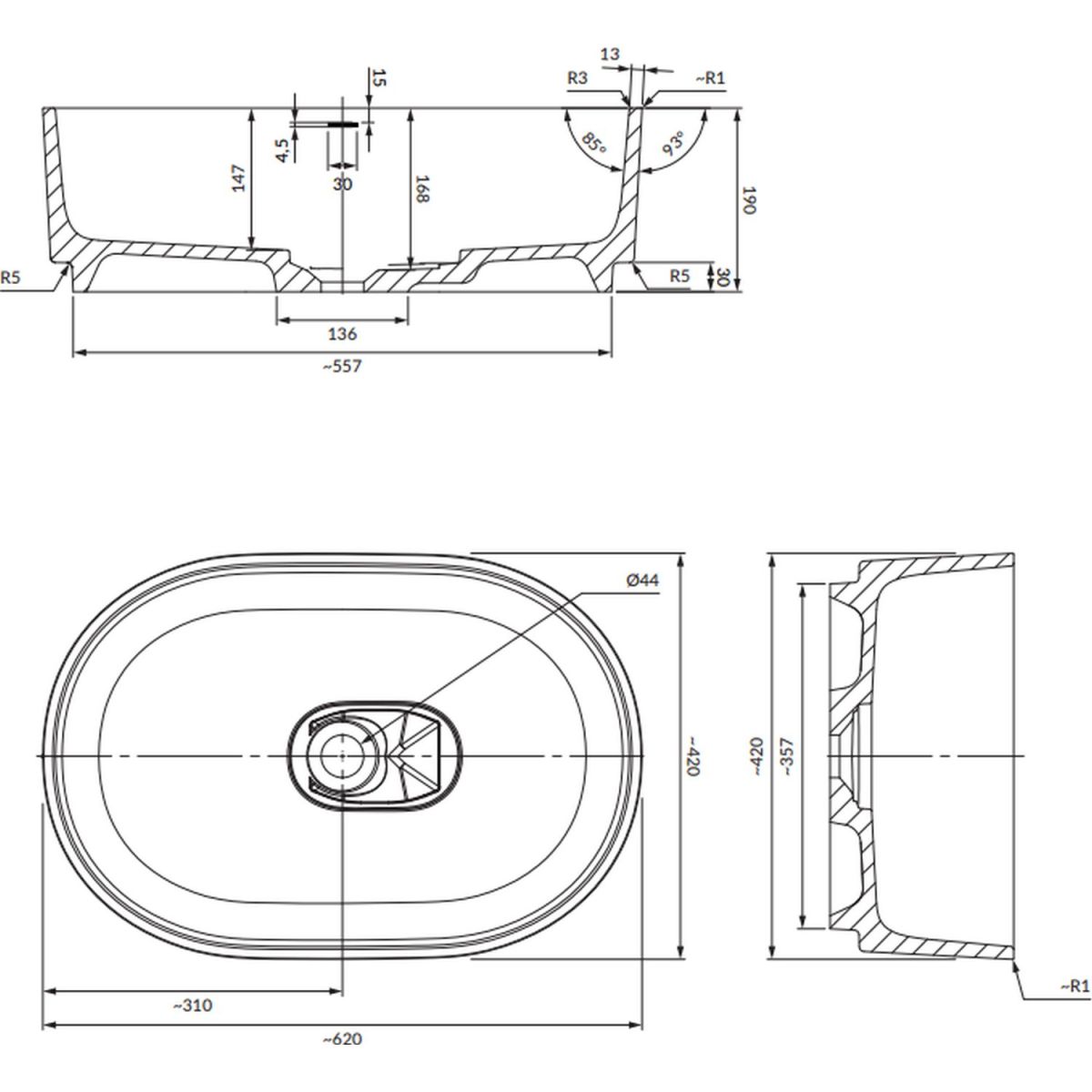 CADENCE Aufsatzwaschbecken M+, 62 x 42 cm