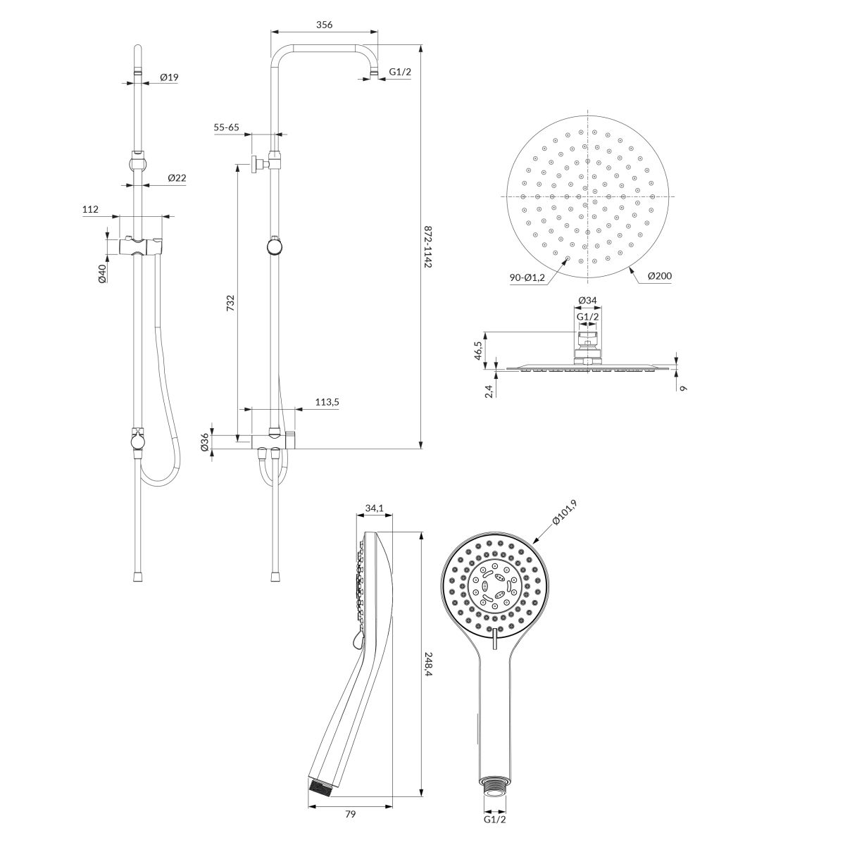 - Inbegriffen: Duschkopf, Duschkopf, Duschschlauch, Duschstange, Duscharm, Eckanschluss