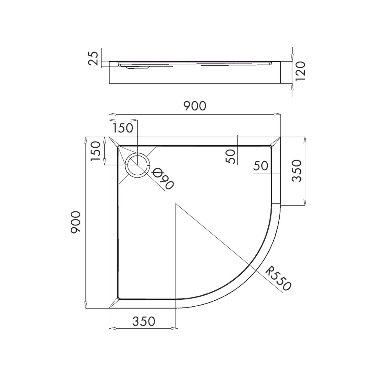 Omnires Camden Halbrunde Duschwanne 90x90 cm weiß CAMDEN90/OBP