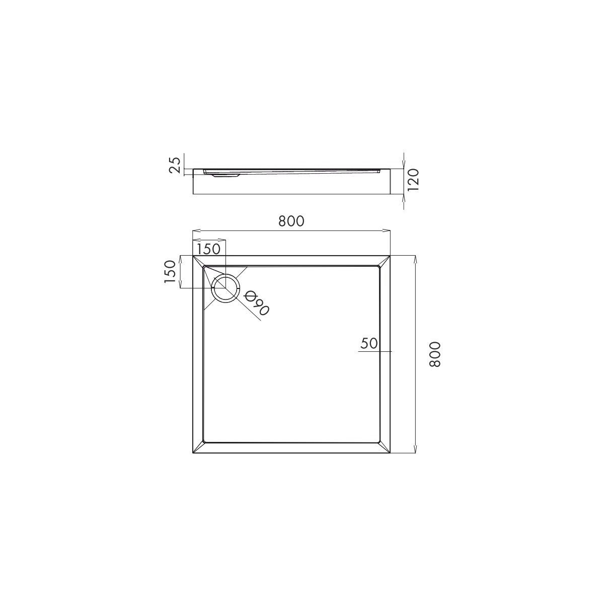 Omnires Camden Quadratische Duschwanne 80x80 cm weiß CAMDEN80-KBP