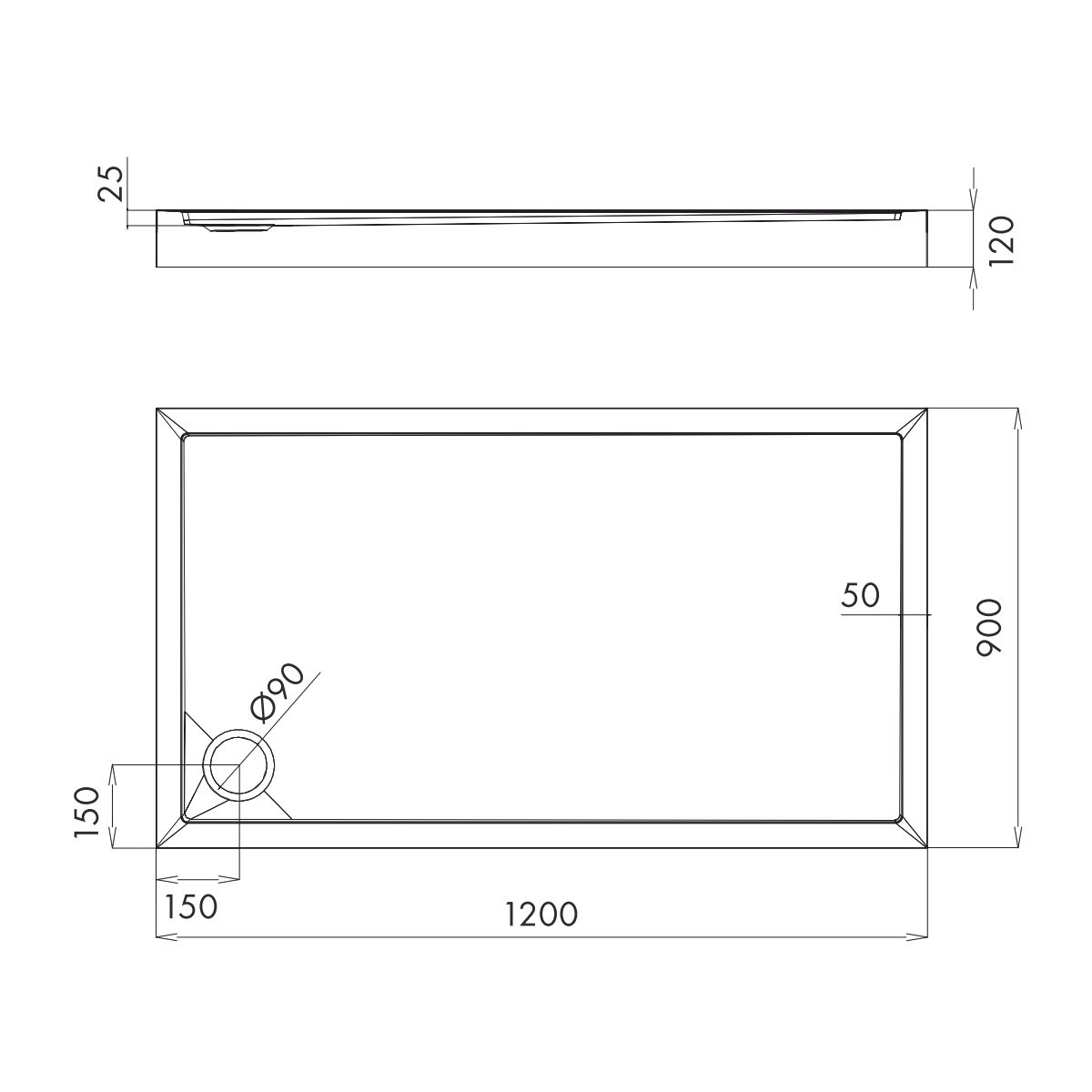 Omnires Camden Rechteckige Duschwanne 120x90 cm weiß CAMDEN90/120/PBP