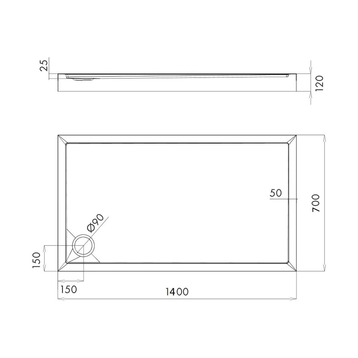 Omnires Camden Rechteckige Duschwanne 140x70 cm weiß CAMDEN70/140/PBP