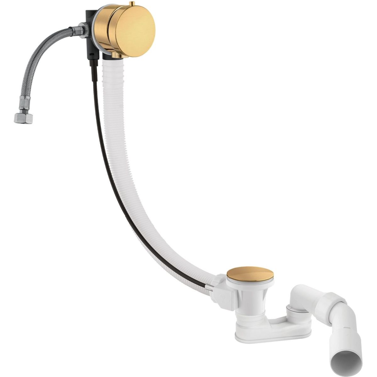 - Badewannensiphon mit Überlauf, Ablauf und Befüllung