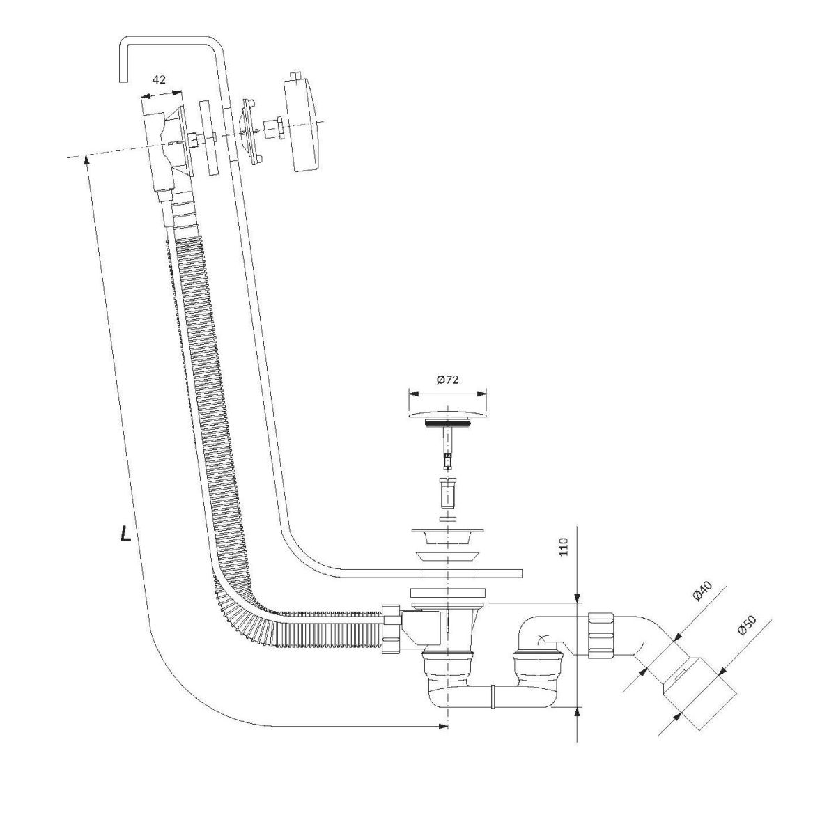 Der Siphon kann in Badewannen mit einem über dem Standard liegenden Abstand zwischen Überlauf- und Abflussöffnung verwendet werden.