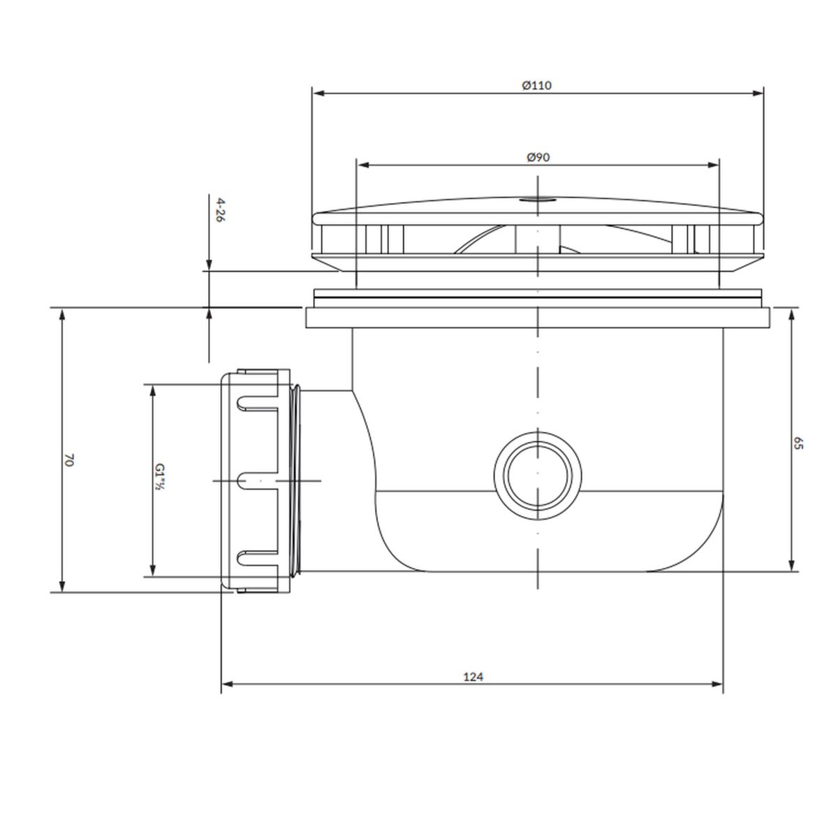 - für Duschwannen mit einem Abflussdurchmesser von ø 9 cm