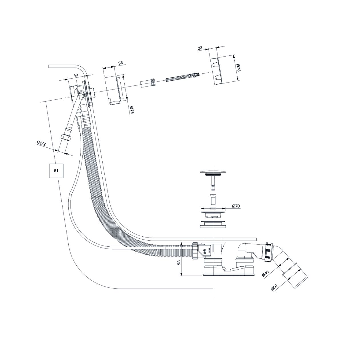 CGS | Überlauf-, Abfluss- und Füllsiphon für Badewannen