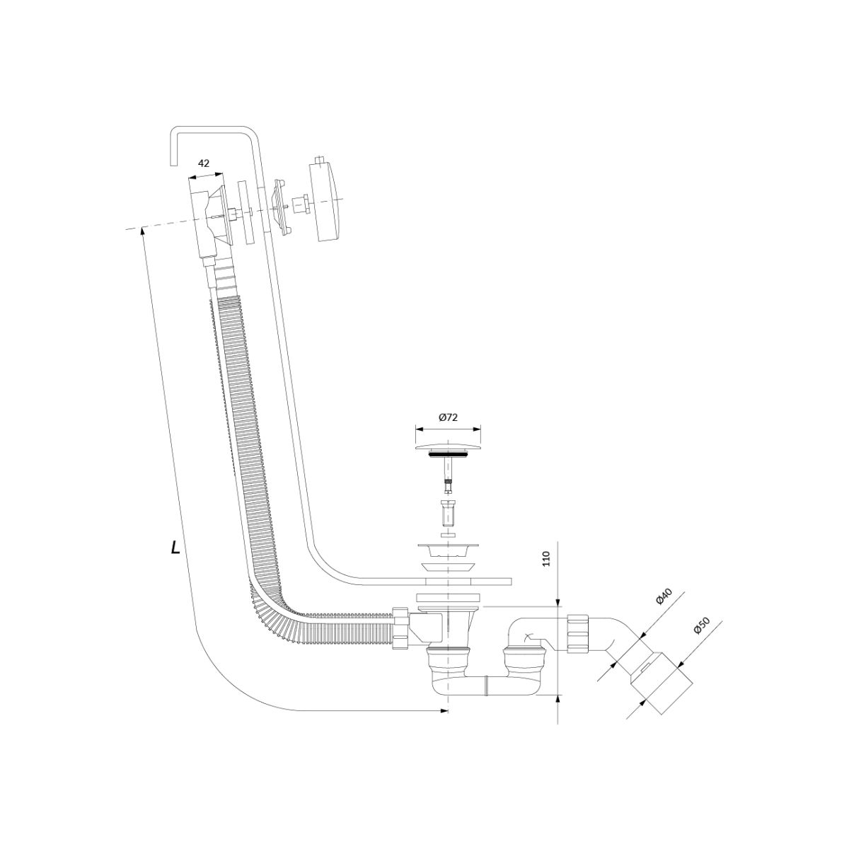 Der Siphon kann in Badewannen mit einem über dem Standard liegenden Abstand zwischen Überlauf- und Ablauföffnung verwendet werden.