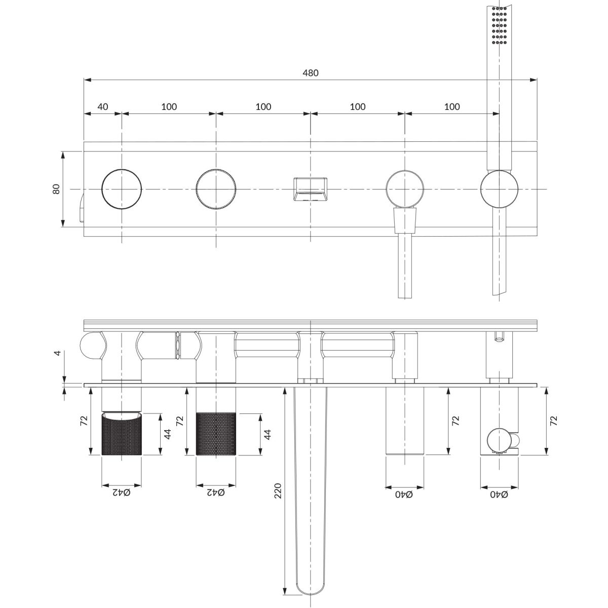 CONTOUR | 5-Loch-Unterputz-Wannenarmatur