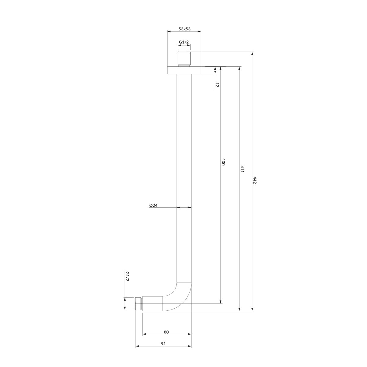 - Anschluss für Regendusche: 1/2"