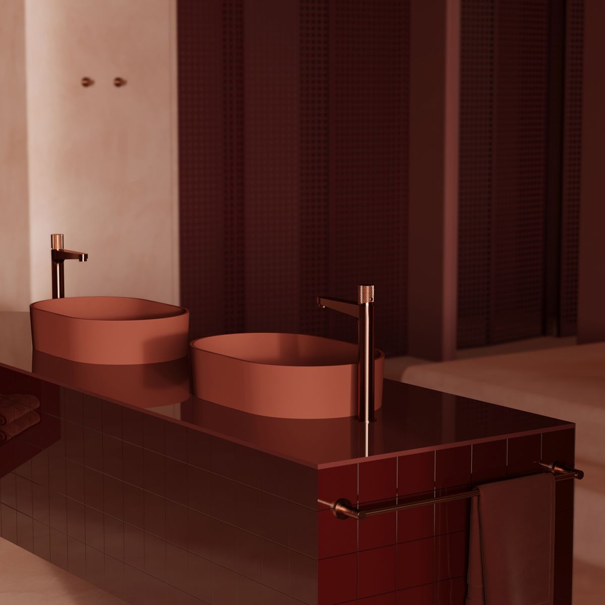 Gebürstetes Kupfer ist eine edle Oberfläche mit einem warmen rotbraunen Farbton und einer satinierten Oberfläche. Die Beschichtung wurde mit fortschrittlicher PVD-Technologie hergestellt.