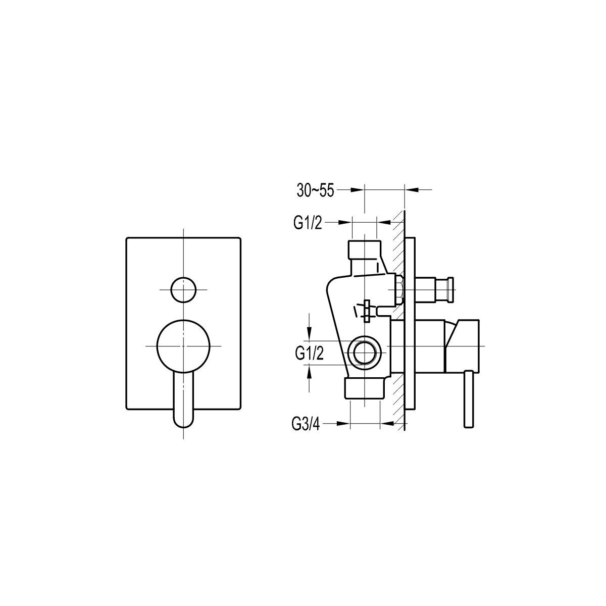 - zwei Mischwasserausgänge: 1/2" und 3/4"