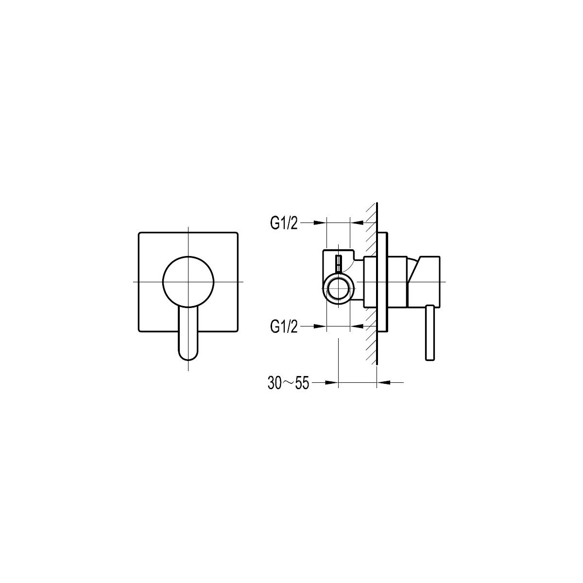 - Mindesttiefe in der Wand für den Einbau des Mischers 4,5 cm