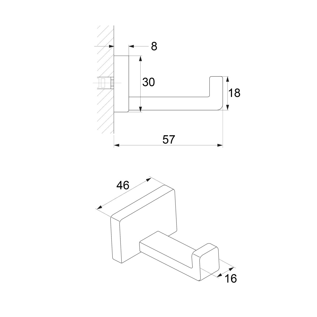 - Breite: 5 cm, Höhe: 3 cm, Abstand zur Wand: 6 cm