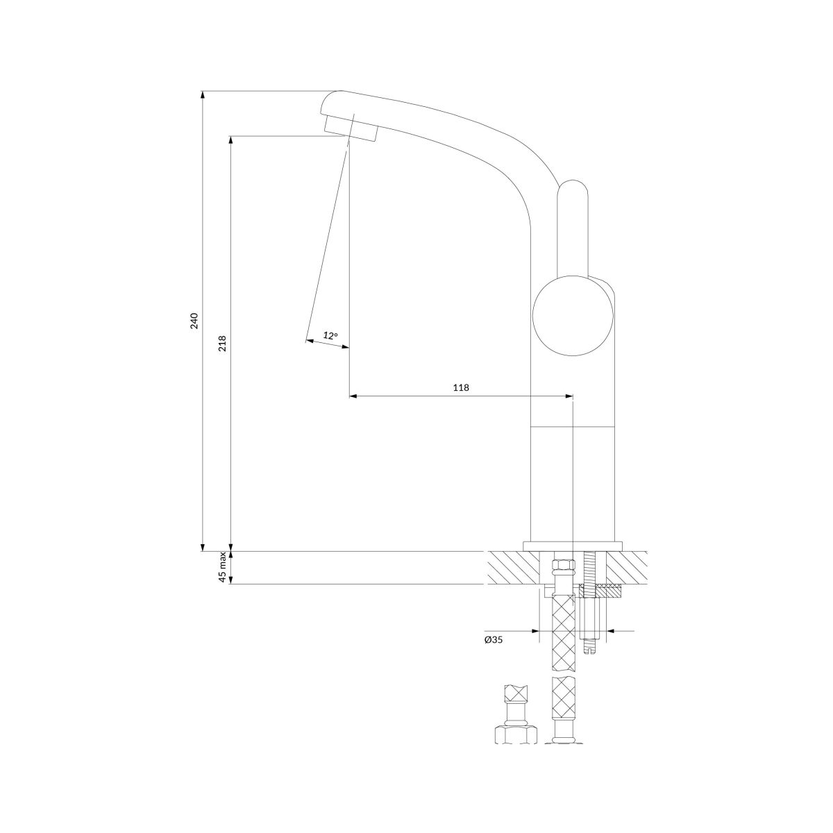 - Gesamthöhe der Armatur: 24 cm