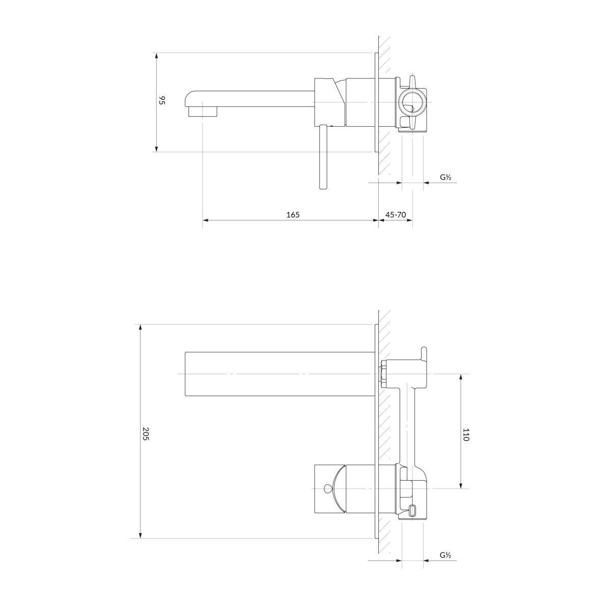 - Abstand des Auslaufs von der Fliesenoberfläche: 16,5 cm