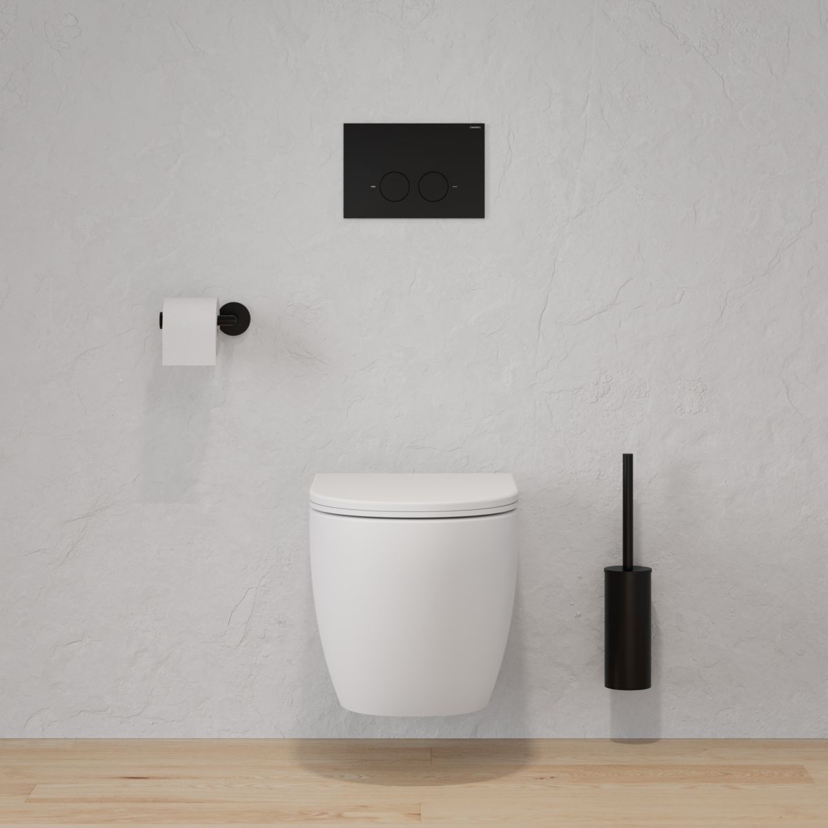 Der Spülknopf ist in Schwarz gehalten – einem ausdrucksstarken Farbton mit tiefer Farbe und einer perfekt glatten, satinierten Oberfläche.