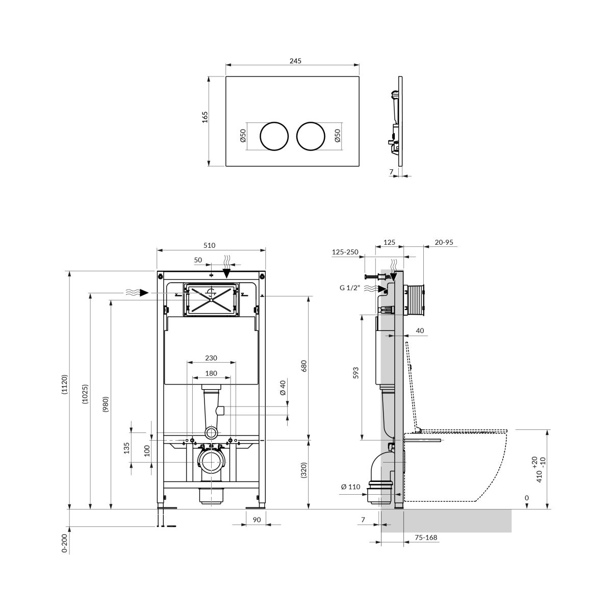 - Unterputz-Spülkasten mit Feuchtigkeitsschutz und einem Fassungsvermögen von 9 Litern
