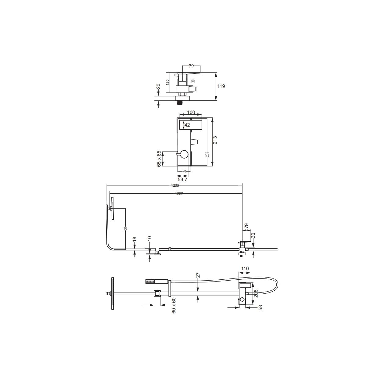 - Inbegriffen: Batterie mit Schalter, Duschkopf, Duschkopf, Duschschlauch, Duschstange