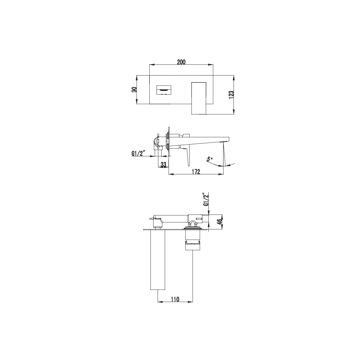 - Mindesttiefe in der Wand für den Einbau der Armatur: 5,5 cm