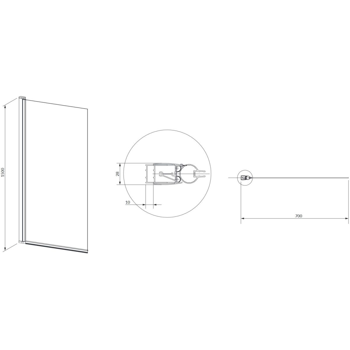 Omnires Kingston Badewannenabtrennung 70 cm einteilig schwarz Matte/durchsichtiges Glas XHE85BLTR