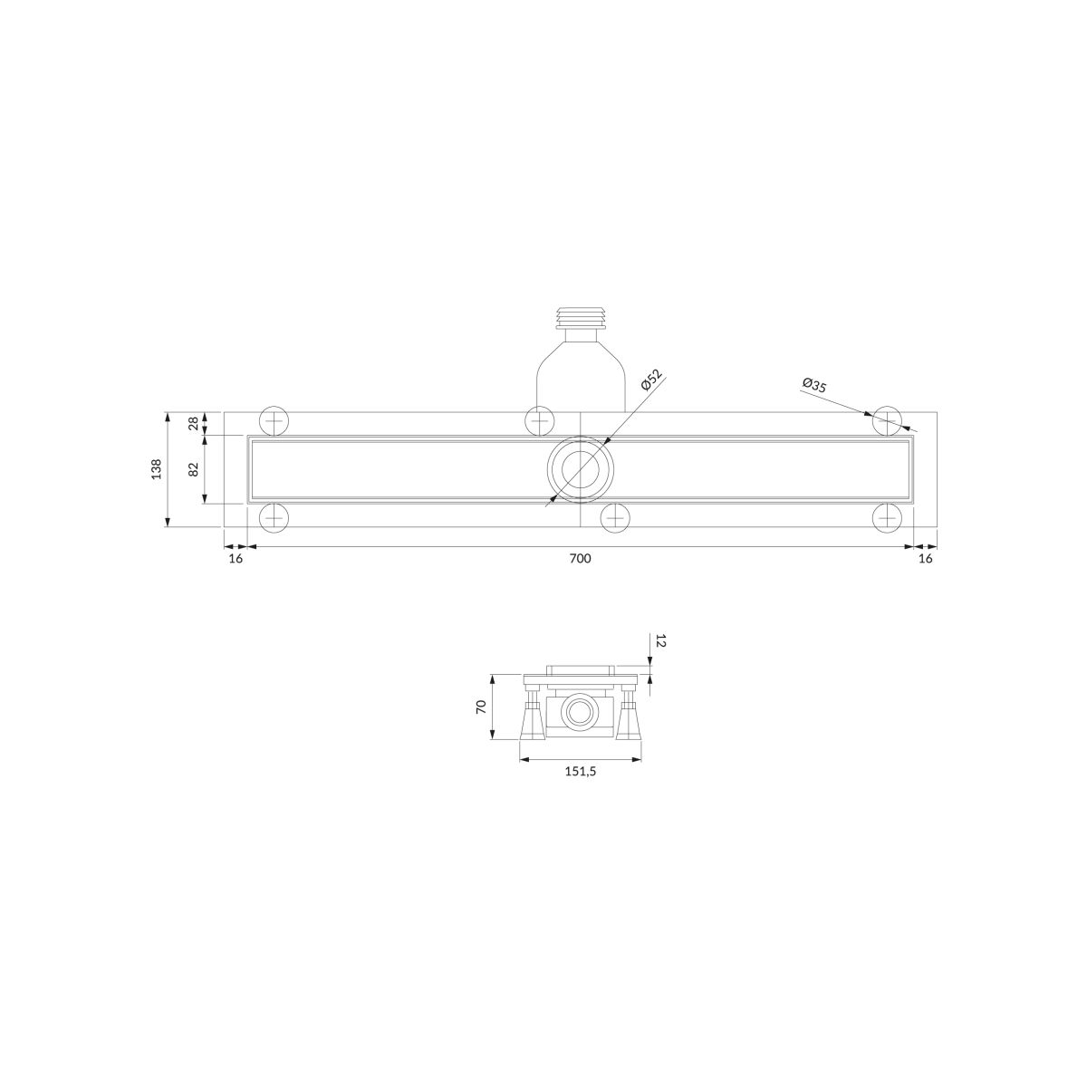 Der Duschrinne OMNIRES LOWFIX zeichnet sich durch ein minimalistisches Design und eine besonders flache Konstruktion aus, die eine größere Installationsfreiheit garantiert. Der Abfluss ist mit einer Abdeckung mit einer Fläche zum Verlegen von Fliesen ausgestattet, wodurch eine harmonische Verbindung mit dem Badezimmerboden geschaffen werden kann. Dank seiner Wirbelkonstruktion garantiert der Siphon eine hohe Wasseraufnahme und somit Komfort beim Baden. Das Produkt wurde aus hochwertigem eloxiertem Aluminium gefertigt, das eine außergewöhnliche Haltbarkeit und Korrosionsbeständigkeit gewährleistet, und seine monolithische Konstruktion garantiert vollständige Dichtheit.