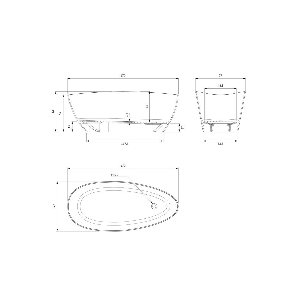 BARCELONA M+ | freistehende Badewanne, 170 x 77 cm
